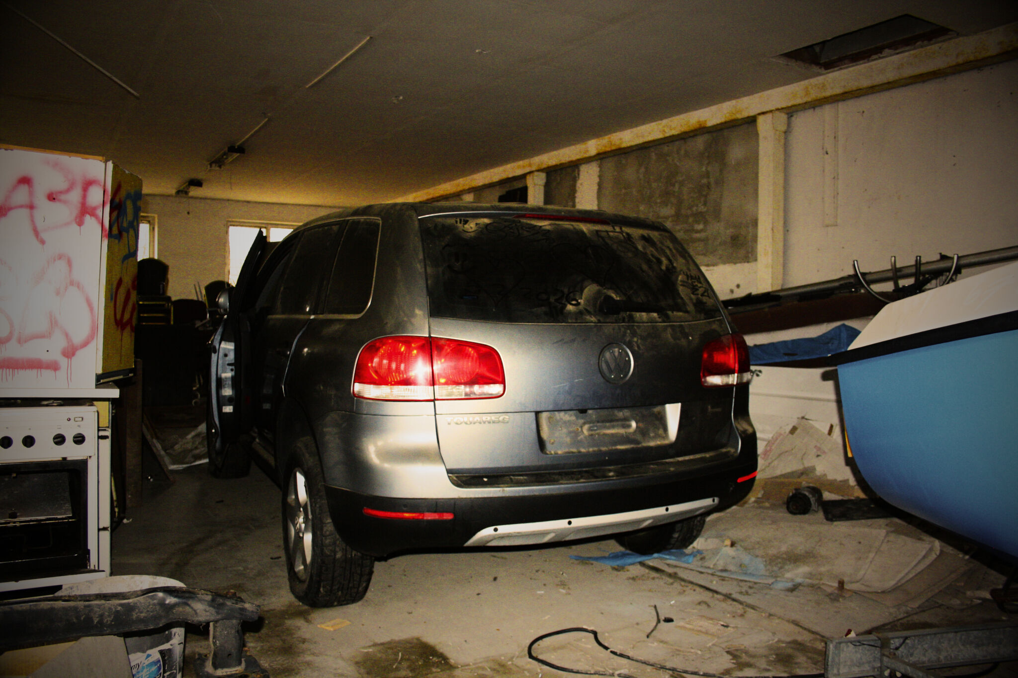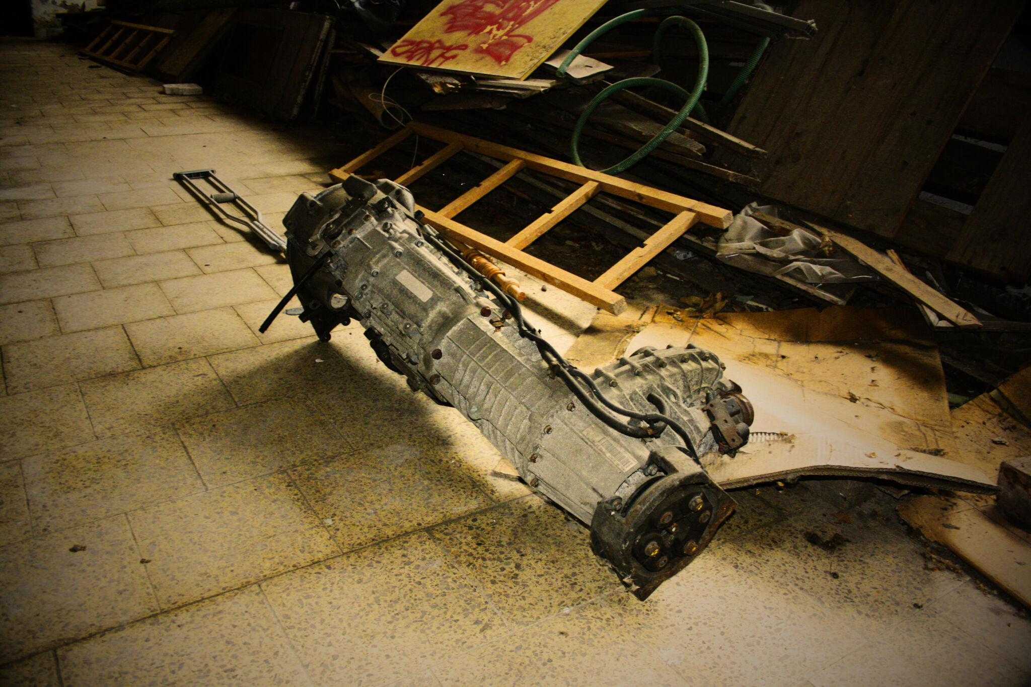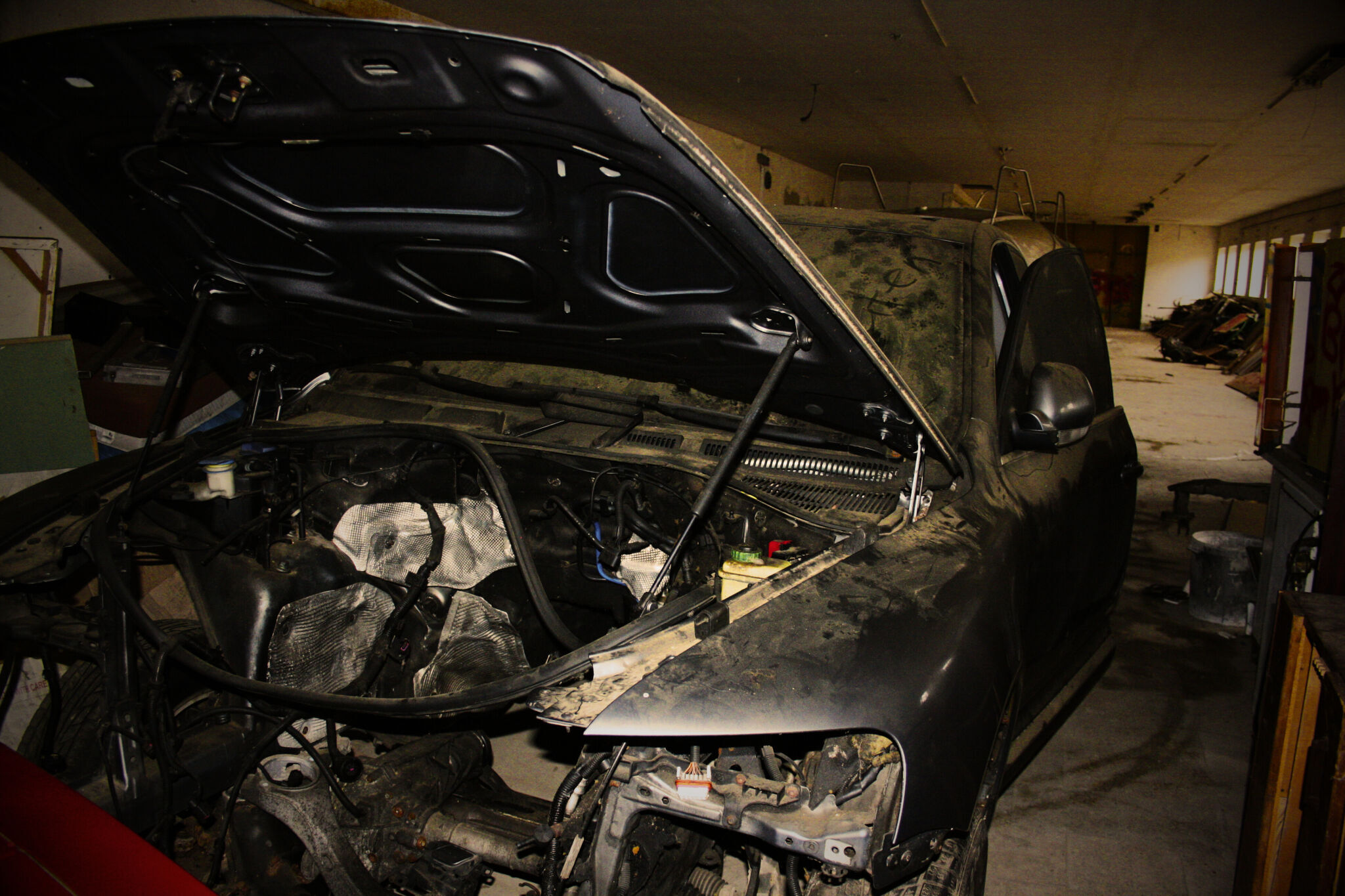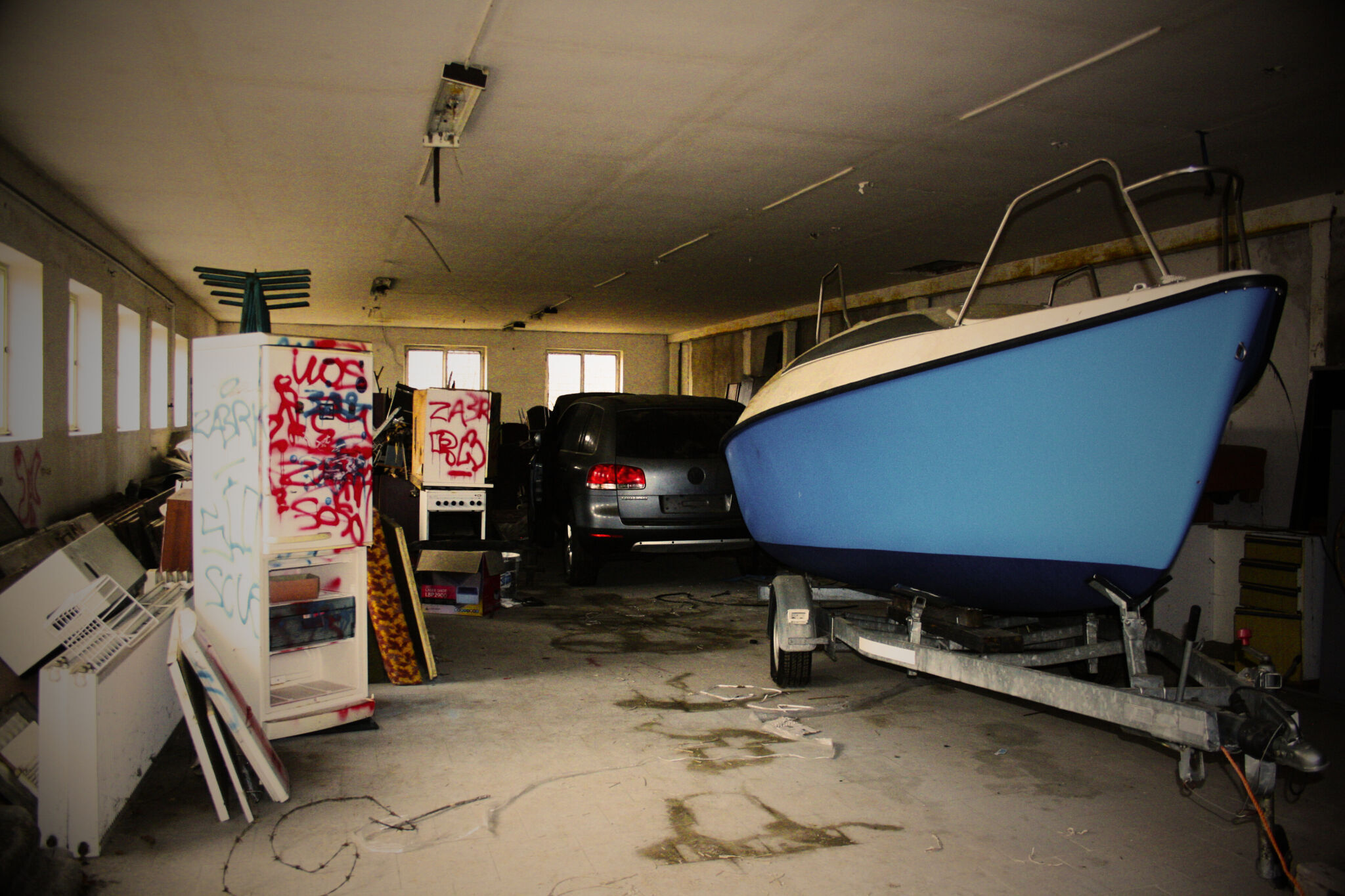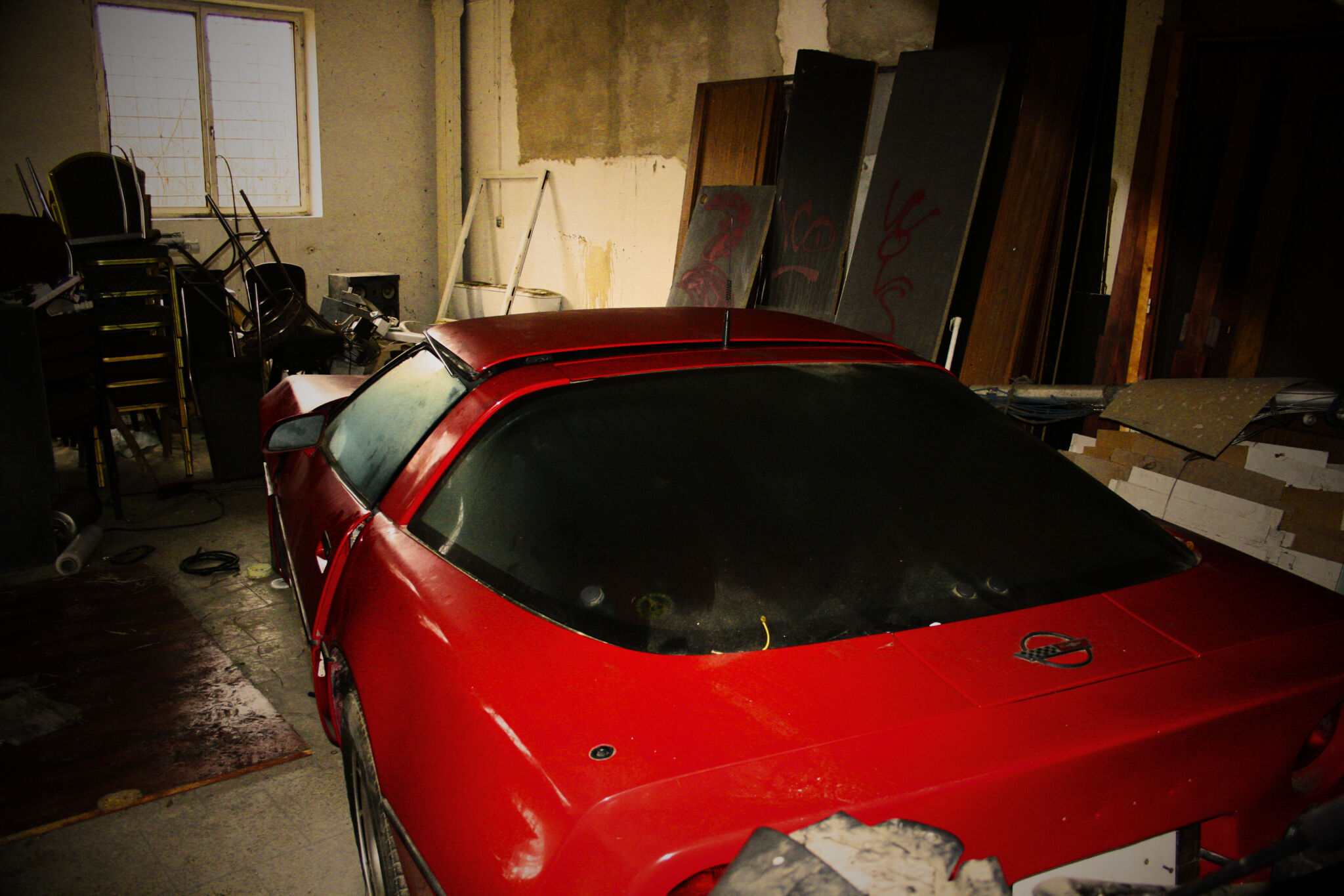 To, co se nacházelo uvnitř, však naprosto změnilo první dojem. V hale jsem objevil starý Volkswagen, loď a především vůz, který se stal hlavním hřebem celé návštěvy – staré Ferrari. Pohled na takové automobily ukryté v opuštěném prostoru má zvláštní kouzlo. Kontrast mezi kdysi luxusními a hodnotnými stroji a chátrajícím prostředím kolem nich vytváří silný vizuální i emocionální zážitek. Každý detail, od vrstvy prachu po rezavé konstrukce, podtrhuje pocit zapomenutí a času, který zde plyne jinak.