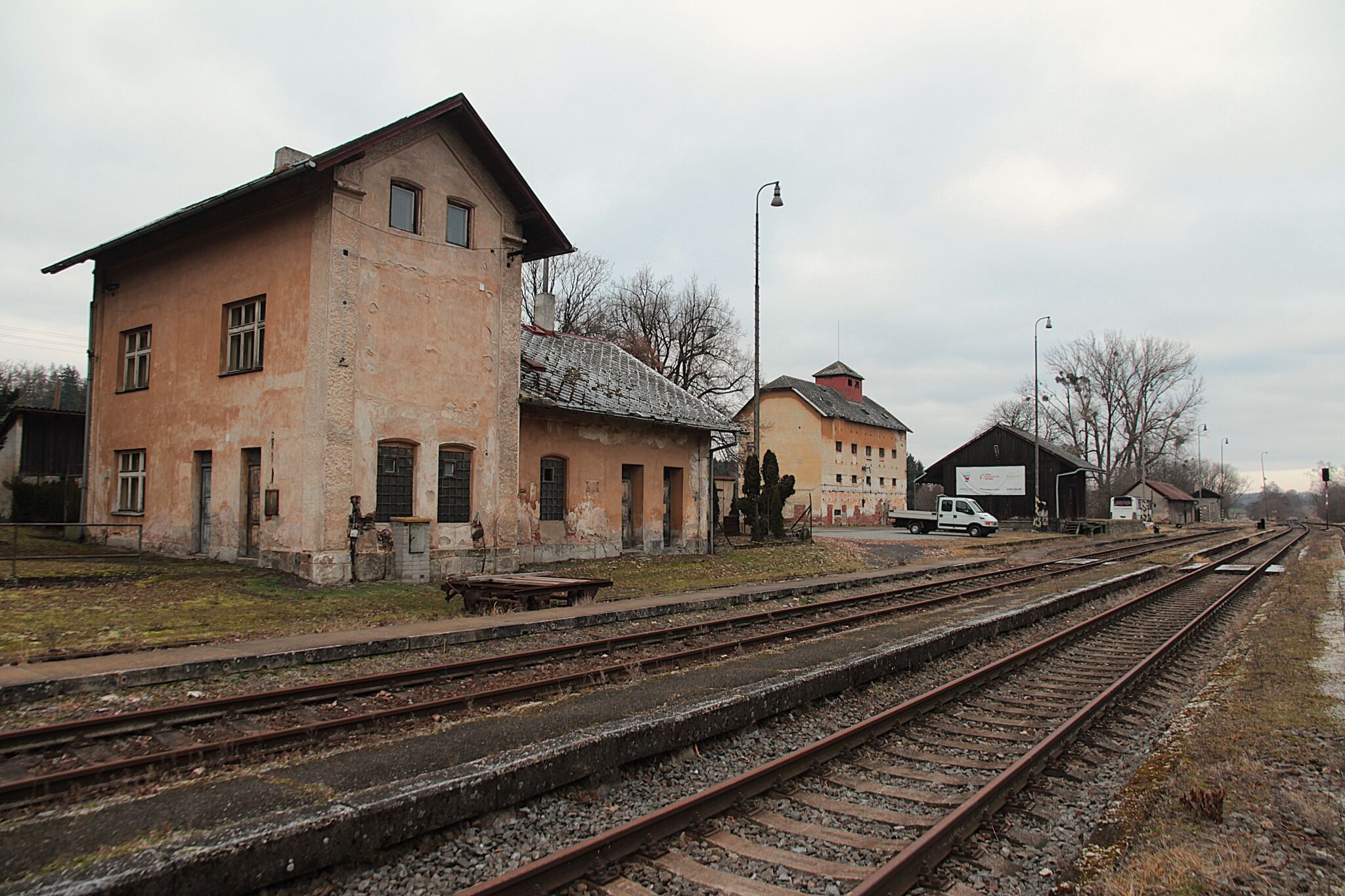 Bývalo to nádraží na hlavním tahu, žádné zapomenuté lokálce. Přesto tu staccato kol utichlo, stejně jako hlášení rozhlasu a ruch cestujících. Dodnes tu je vodárna připomínající parní éru, kdy dávala pít železným ořům a skladiště s rampou, pamatující kdy dráha vozila ještě běžně kusové zásilky. Přesto dnes jeho koleje končí za zhlavími, dráteníci smotali trakční vedení, návěstidla zhasla a expresy uhání úplně jinudy. Zůstalo opuštěné nástupiště, kde už nkdo nečeká, hodiny na kterých se zastavil čas, jeden opuštěný hitlák, který už nemá kudy by odjel a z autobusového přípoje je ubytování pro bezdomovce. I ta cedulka s nadmořskou výškou už...
