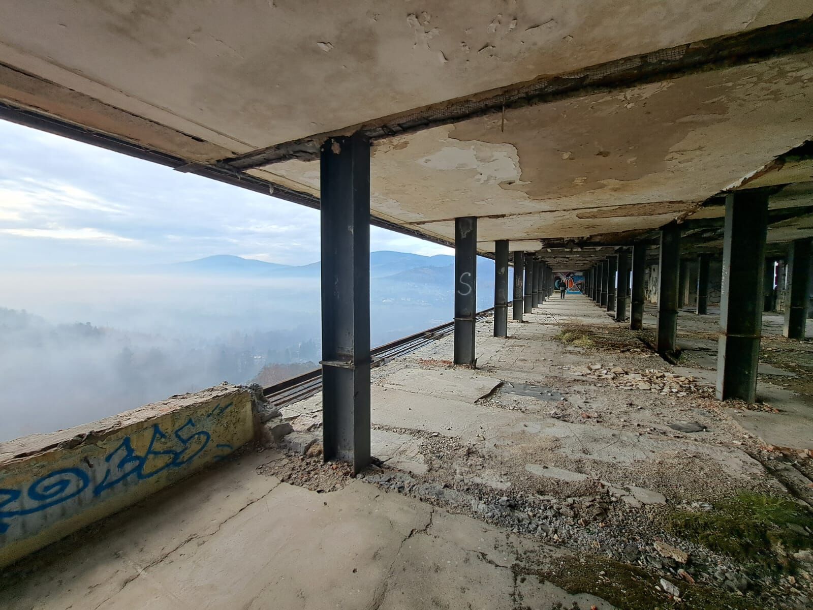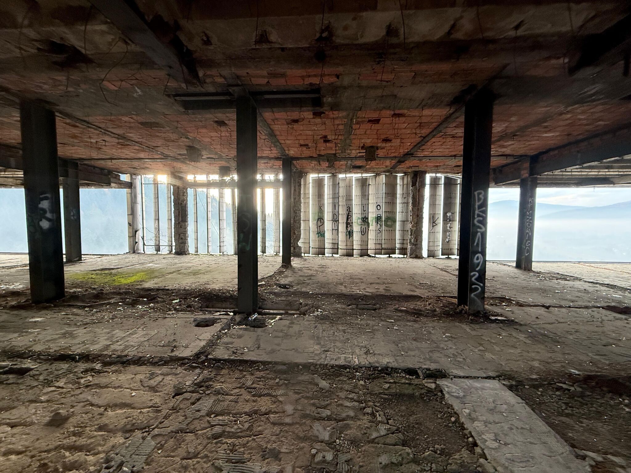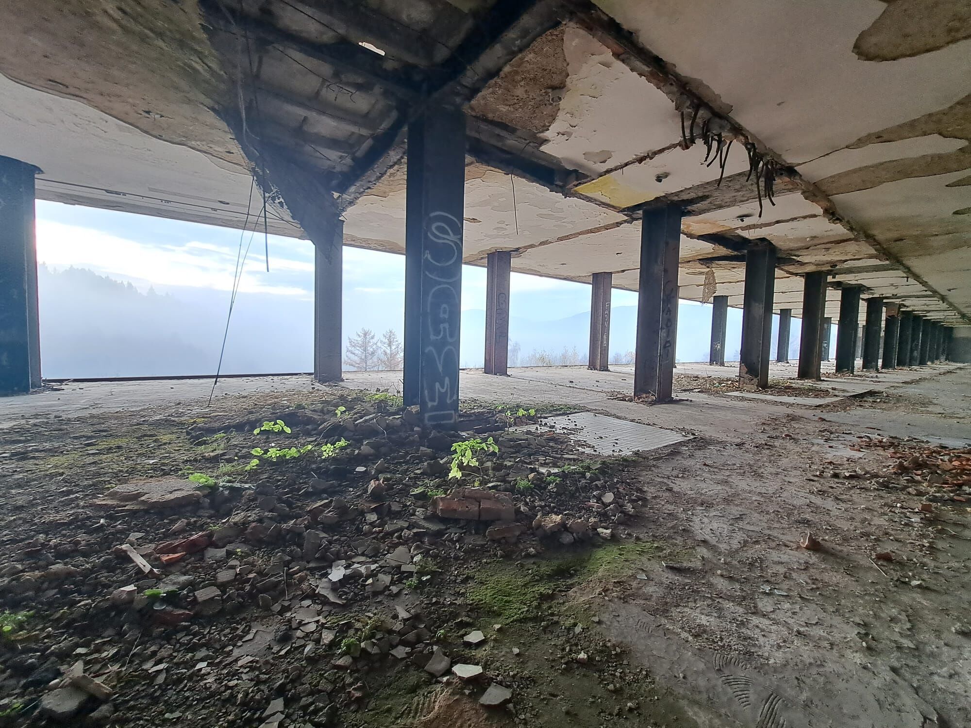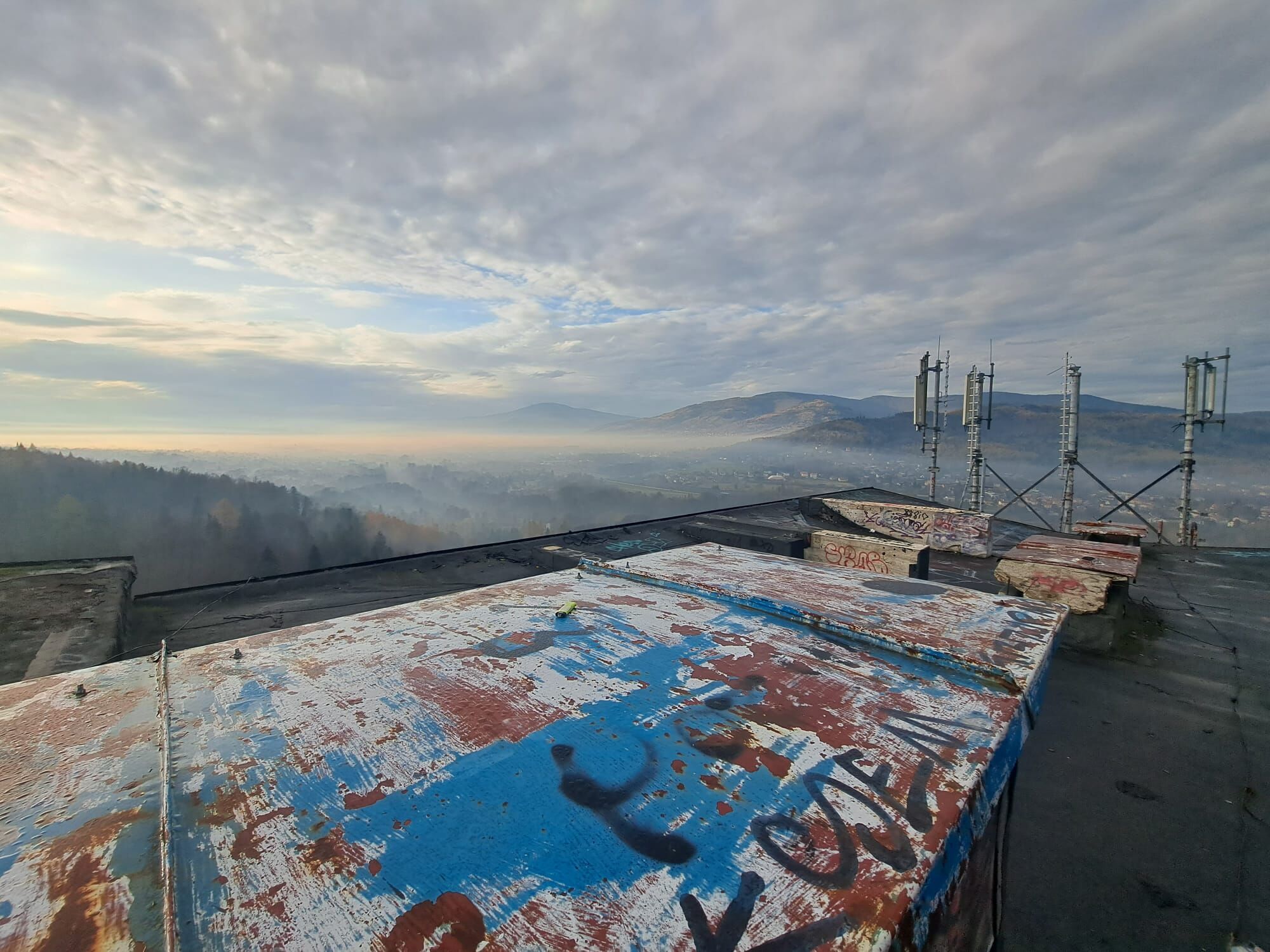 Ráno. Nula stupňů a jde mi pára od pusy. Dopínám zip od bundy až kam to jde. Silueta výškové budovy vystupuje z mlhy a s parťákem pomalu hledáme vstup. Nějakou tu chvíli na to už koukáme ze střechy jak si sluníčko probíjí cestu skrz mraky. Stálo za to si přivstat...