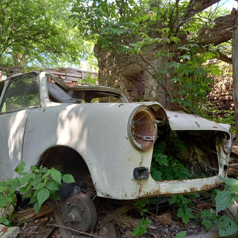 Bývalá hospoda, byť poněkud ruinózní, ale zato s trabantem ve dvoře...