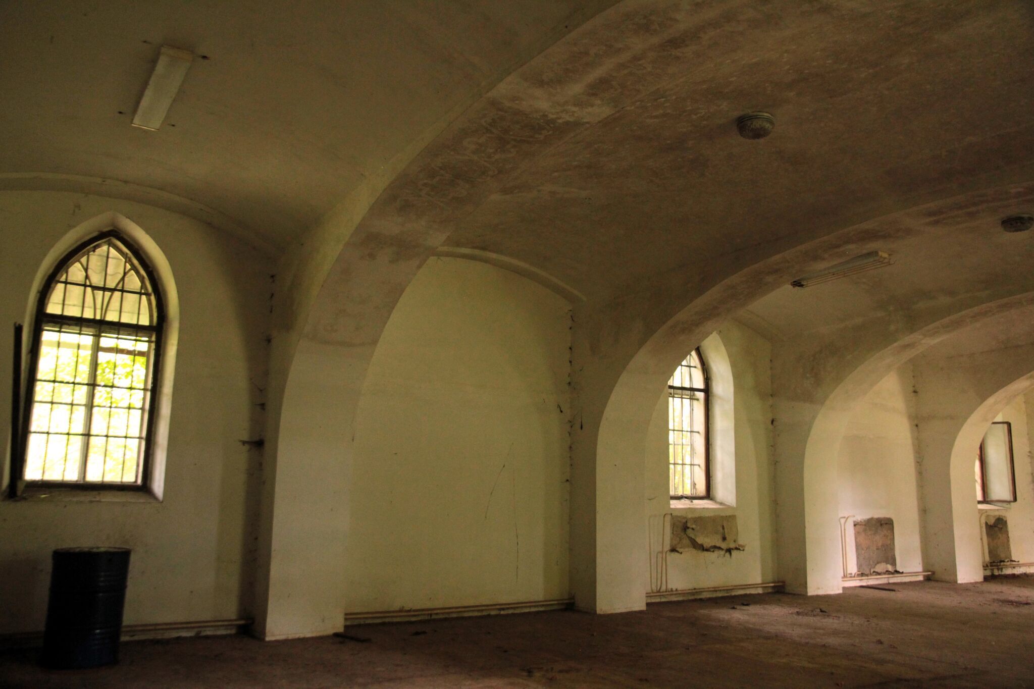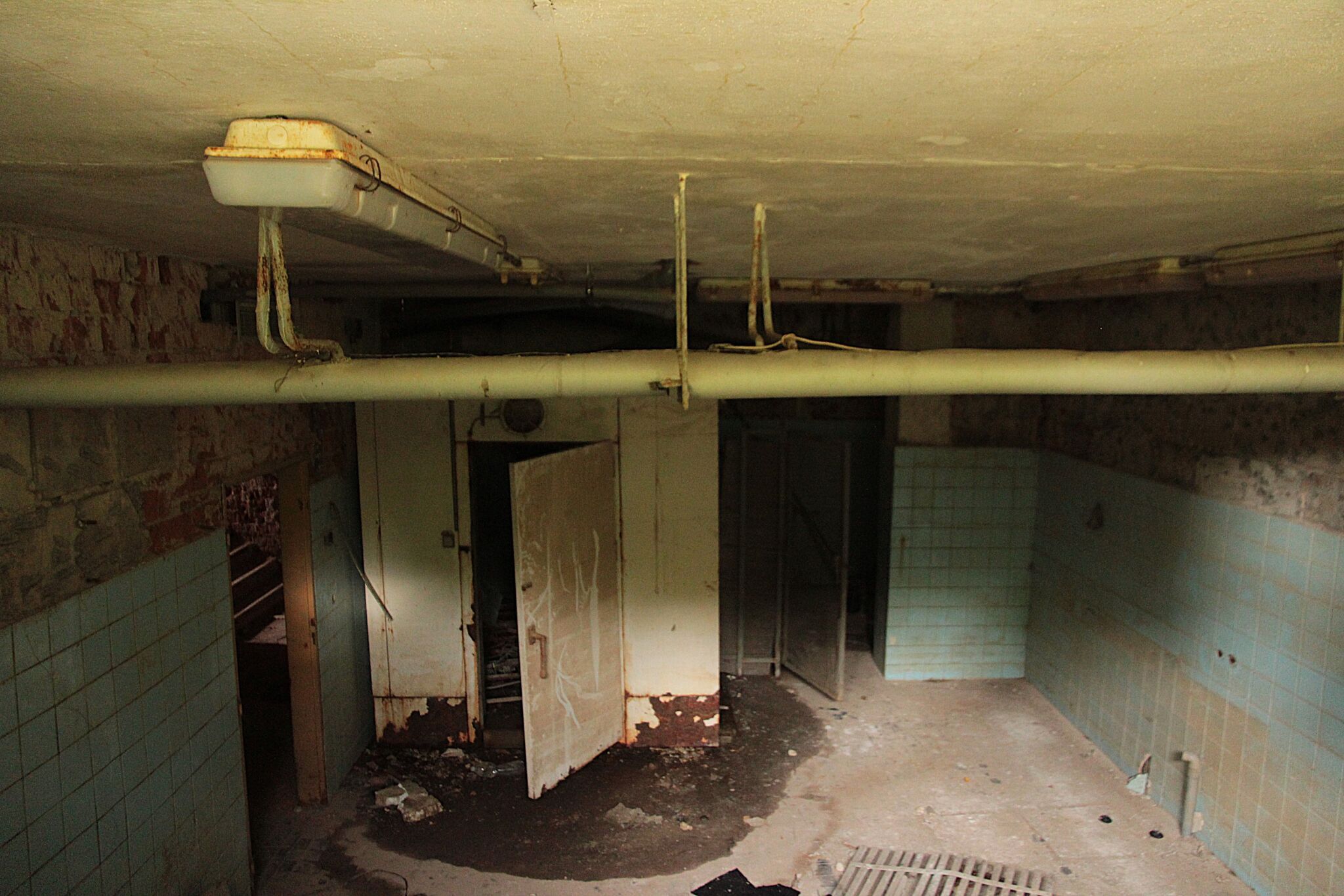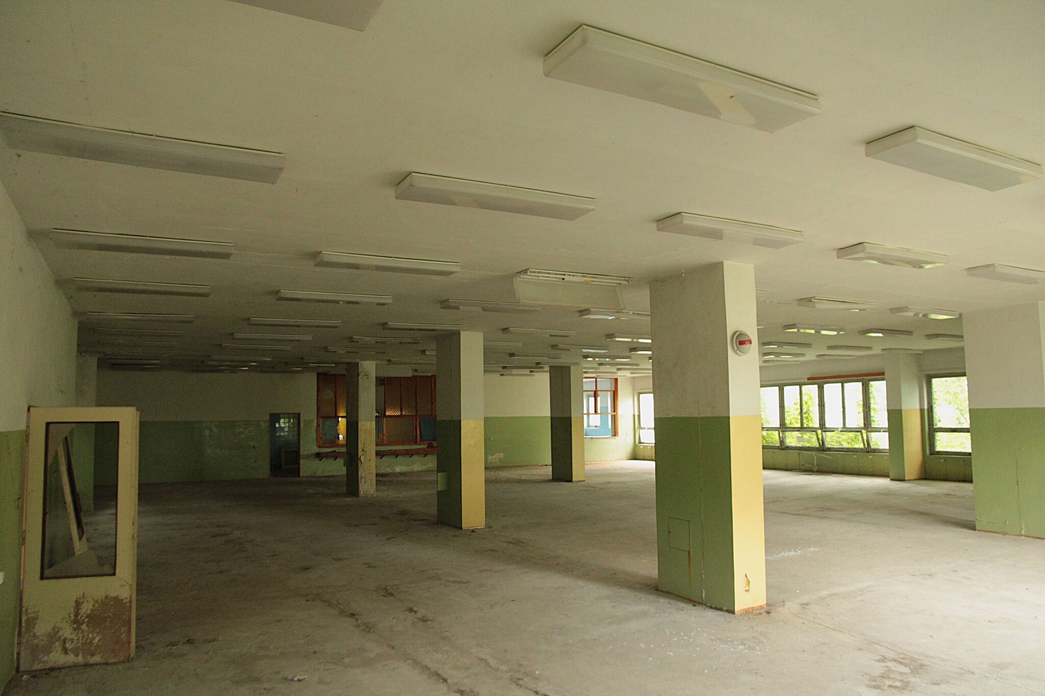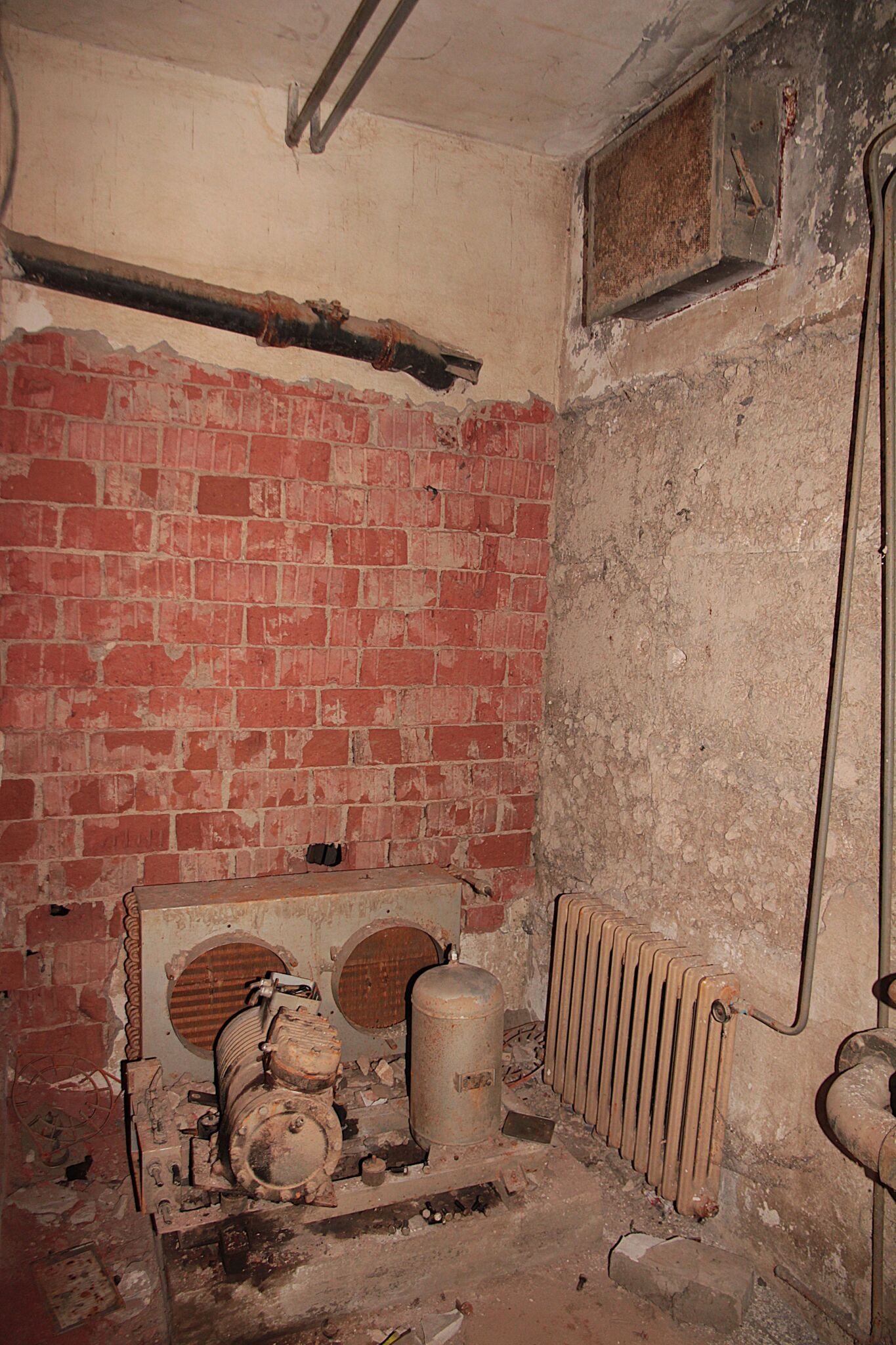 During the reconstruction, the existing buildings were to be reconstructed, which was supposed to be cheaper than building new ones. Only the foundation stone was laid for what was supposed to be a decade later this year. Otherwise, there are only glimpses of all the former uses of the site and a boiler room in the back...